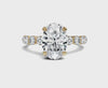 A luminous 2.75 Ct oval diamond graces the center, accented by glimmering side stones that trail along the band. The design offers a refined combination of timeless allure and radiant sparkle.